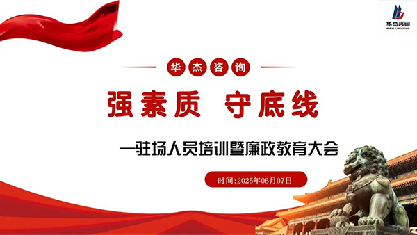 6月7日,浙江華杰工程咨詢有限公司舉辦廉政、安全生產(chǎn)教育與工程管理專項培訓,公司領(lǐng)導班子、各項目駐場人員百余人參加。培訓圍繞廉政、安全生產(chǎn)教育和專業(yè)賦能展開。...