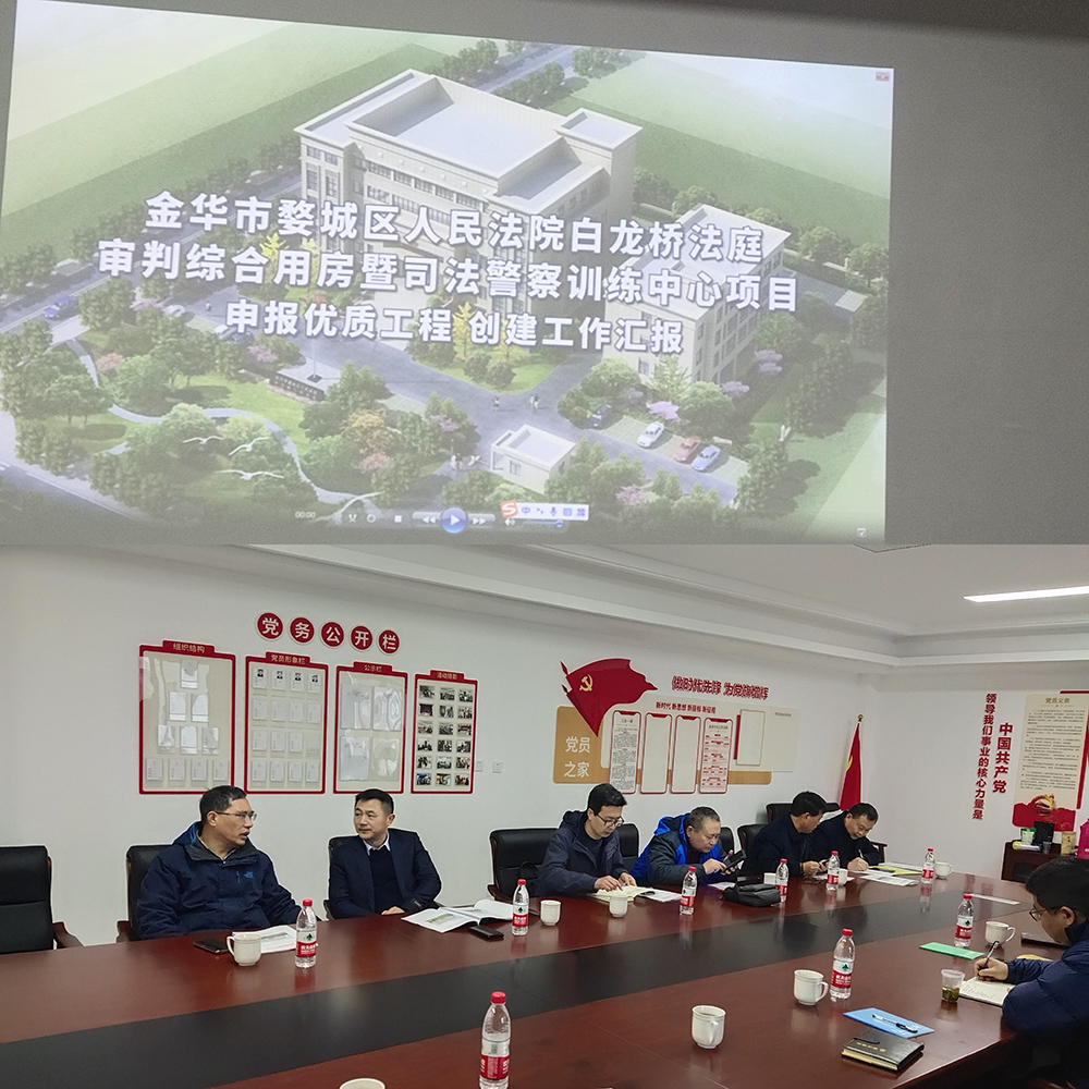 婺城区人民法院白龙桥法庭审判综合用房暨司法警察训练中心项目召开申报优质工程汇报会。
