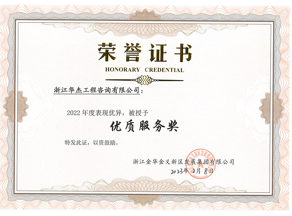 项目的顺利实施,离不开金义新区发展集团的大力支持和关怀,离不开施工单位的积极努力,我单位将紧紧围绕“质量、进度、安全”六字方针,严格监理;热情服务、公正科学、廉洁自律地做好精准咨询,助力集团认真抓好质量监管、进度控制和安全生产,确保完成项目建设。荣誉属于过去,每天都是新的开始,浙江华杰工程咨询有限公司将一如既往的为业主提供更优质、更专业的服务。